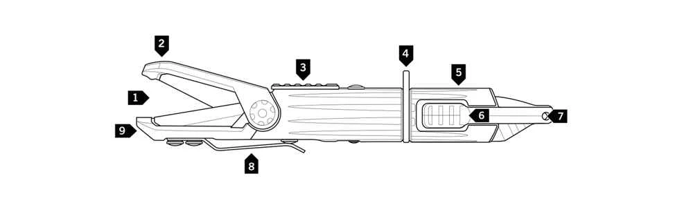 De compacte tool met twee uiteinden heeft zes essentiële lijnbeheerfuncties, alles wat nodig is om knopen te leggen en lastige lijnen te hanteren. Elke functie heeft een specifiek doel en biedt een intuïtieve oplossing voor elke stap van het vertrouwde proces.