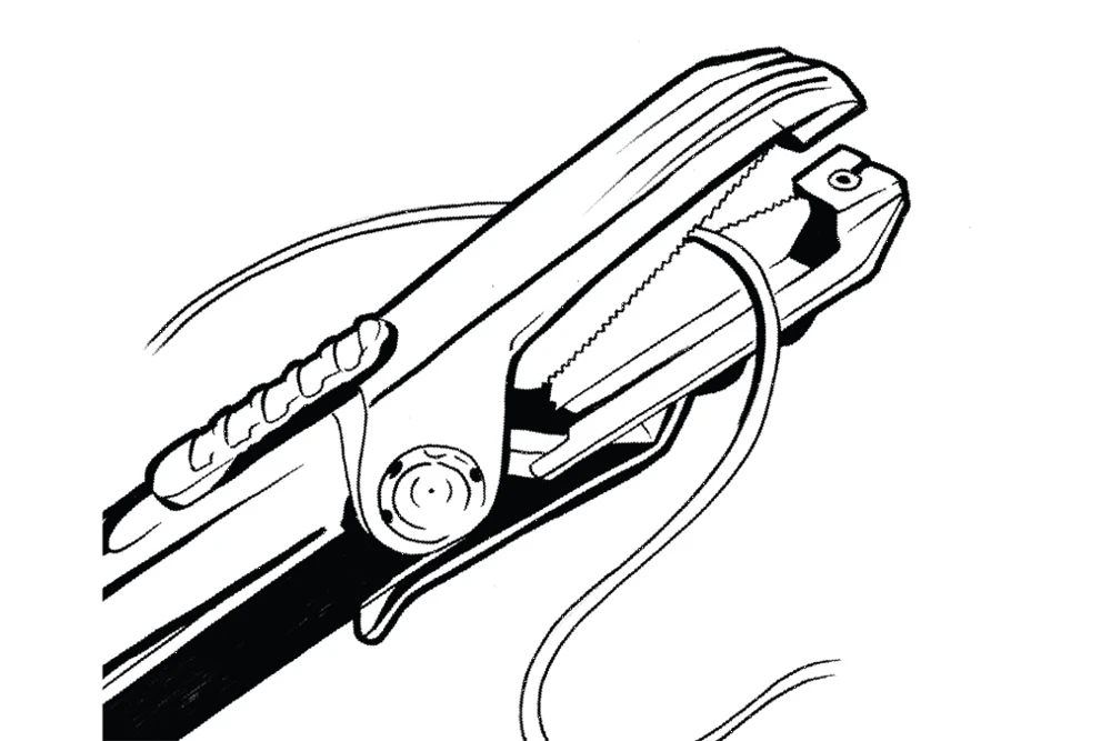 Het andere uiteinde van de LineDriver doet het zware werk zoals het netjes doorsnijden van de vis lijn, loodjes knijpen en vislijn rijgen.