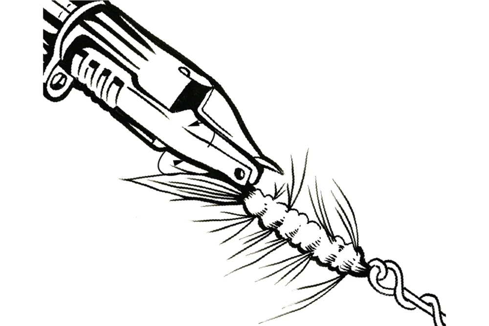 Het roterende uiteinde van de LineDriver is ontworpen om te helpen bij het leggen van knopen en het verwijderen van oogjes.