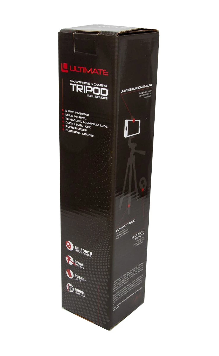 Dit Ultimate statief is perfect om je activiteiten en vangsten langs de waterkant vast te leggen op video of foto met een mobiele telefoon. De poten zijn afzonderlijk instelbaar en met de ingebouwde waterpas controleer je of het statief goed staat. Het compacte en lichte design van de tripod zorgt ervoor dat deze ook makkelijk mee te nemen is. De compacte remote-control werkt via Bluetooth en is compatibel met de meeste smartphones. Dankzij de afstandsbediening – met een bereik tot 10m – heb je altijd beide handen vrij. Installeren is simpel dankzij de meegeleverde handleiding.